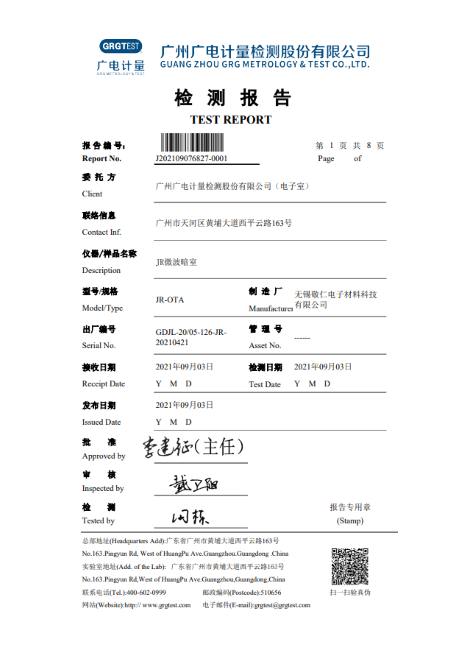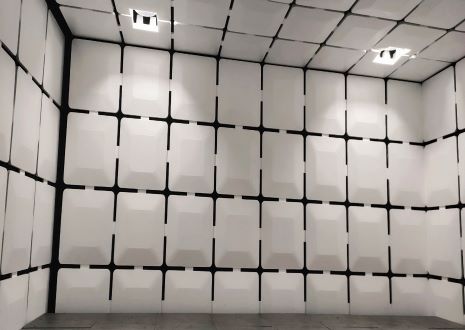 The all-anechoic chamber is designed according to the calibration method in the microwave anechoic chamber specified in the field strength probe calibration specification IEEE Std 1309-2013, and the laboratory meets the site requirements of the JJF 1886-2020 field strength probe calibration specification, and the field voltage VSWR in the full frequency band of 1GHz-40GHz is less than 1db, implying that the shielding performance meets the requirements of GBT 12190. The overall layout of the darkroom is as follows: