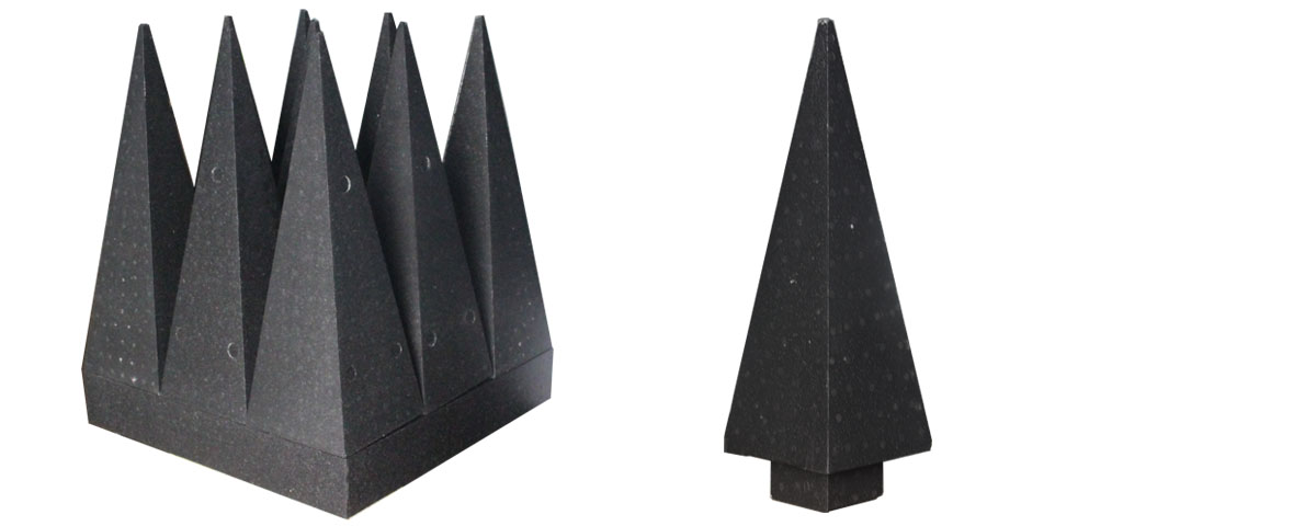 It is an electric wave absorber based on expanded polystyrene that uses a resistive loss absorber and a ferrite magnetic loss absorber.